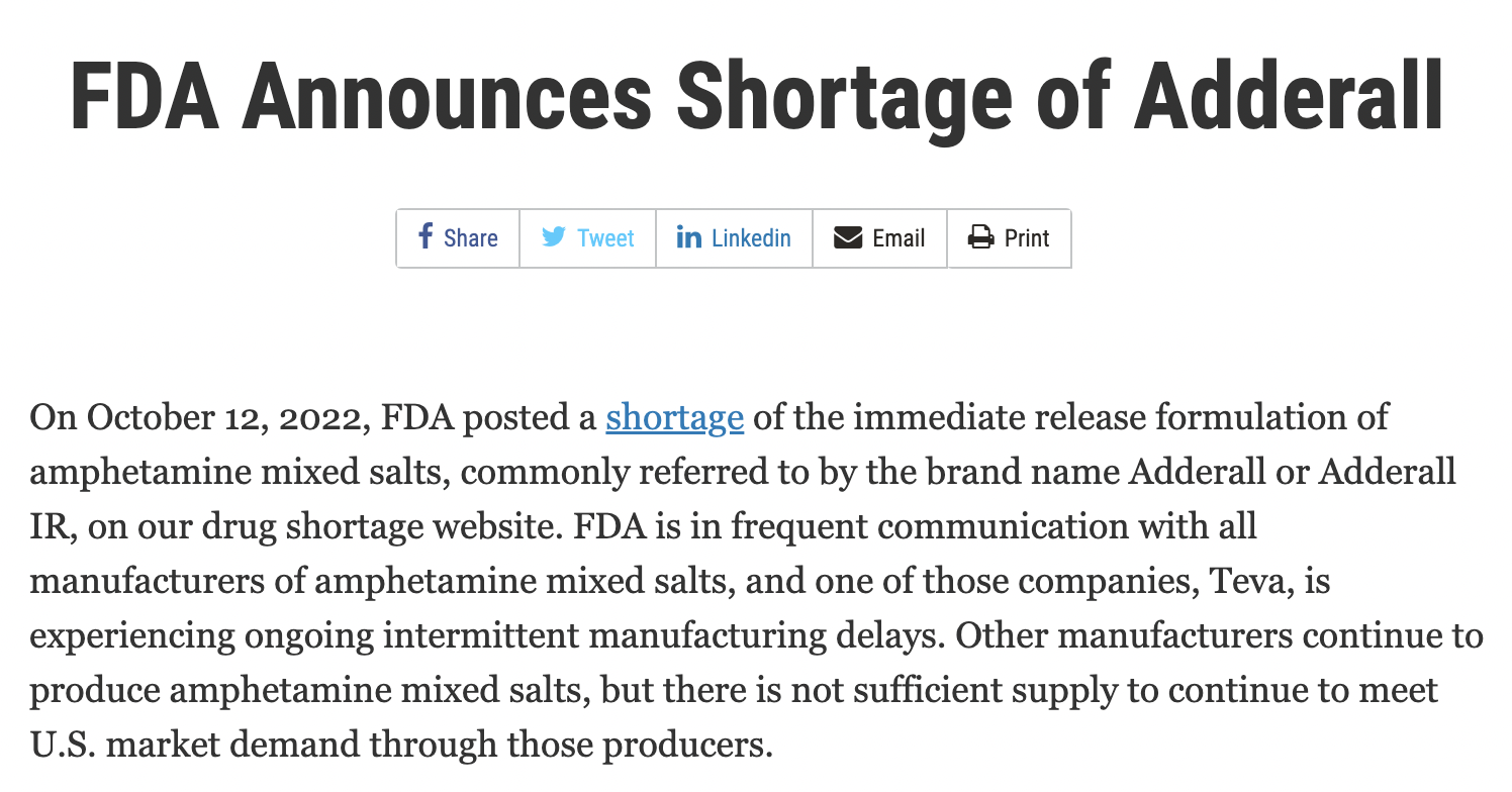 In 2022, the FDA announced a shortage on the popular ADHD treatment drug known as Adderall or Adderall IR. In fact, the shortage was so impactful that many pharmacies were turning away folks looking to fill their Adderall prescriptions. The cause of the shortage? Numerous manufacturing delays and supply chain issues.